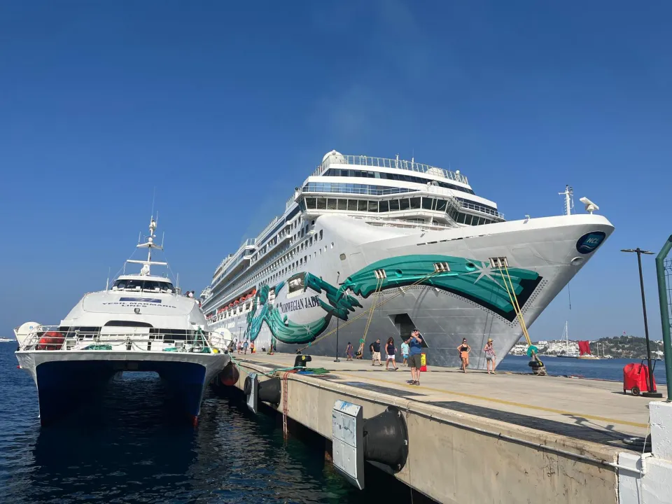 Bahamalar bayraklı "Norwegian Jade" isimli kruvaziyer, Muğla'nın Bodrum ilçesini ziyaret etti.
