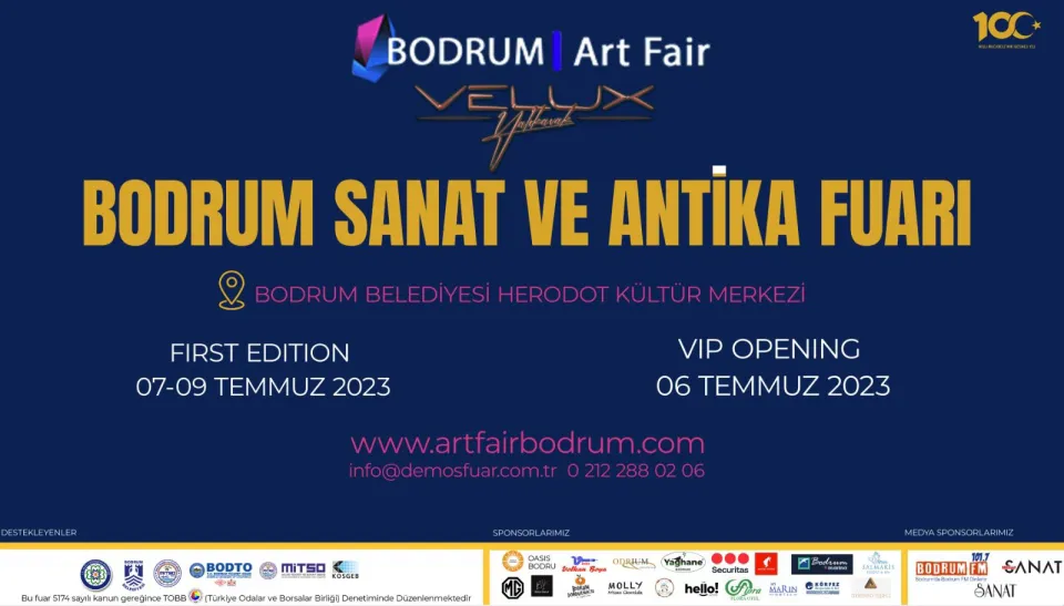 Bodrum Belediyesi Herodot Kültür Merkezi’nde 6 Temmuz 2023 Perşembe günü Vip açılışı yapılacak olan BODRUM SANAT VE ANTİKA FUARI, sanat dostu VOLKAN BOYA’nın renkli kokteylin ardından, 7-9 Temmuz günlerinde 13.00-20.00 saatleri arasında ziyaret edilebilecektir.