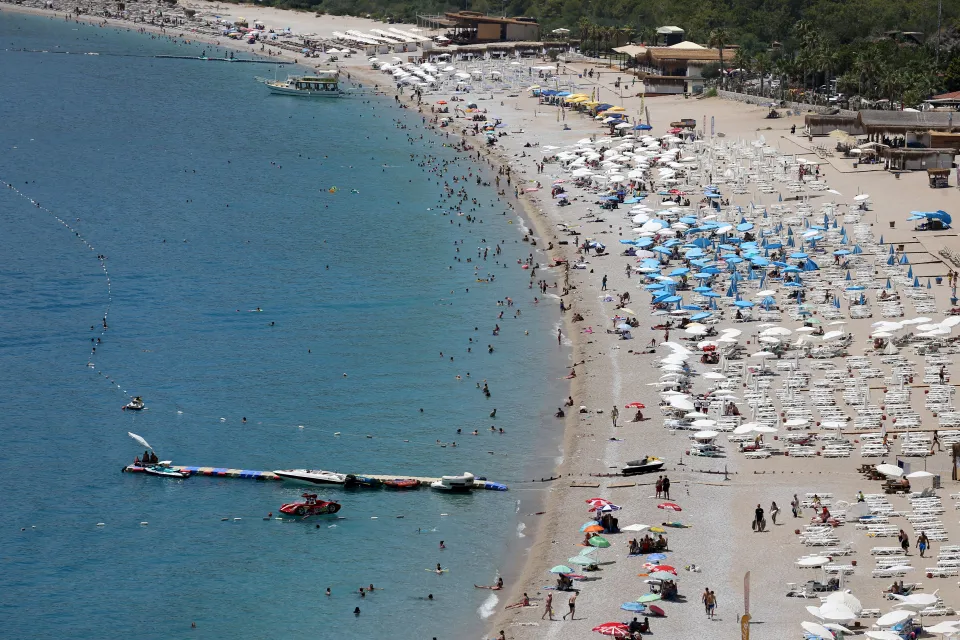 Hava sıcaklığının 43, deniz suyu sıcaklığının 30 derece kaydedildiği Fethiye ilçesindeki Ölüdeniz'de yerli ve yabancı turistler sahilleri hareketlendirdi. Tatilciler, Kumburnu ve Belcekız plajlarına akın etti.