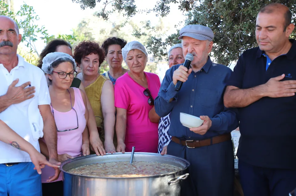 Bodrum Alevi Bektaşi Kültür Derneği Meclis Başkanı İbrahim Turan “Aşure Nuh peygamber zamanında da bütün canlılar için paylaşım demekti, hoşgörü demek, sevgi demekti. Yaşamda, doğada birbirimize ne kadar hoşgörülü sevgiyle yaklaşırsak yaşam alanlarımız da o kadar daha rahat ve güzel olur. İnsanların anlaşmazlığı son bulur diye düşünüyoruz. Bugün yakınımızda Milas'ta İkizköylülerin yapmış olduğu mücadeleyi örnek göstererek aşuremizi onlara itaf etmek istiyorum. O mücadelenin de yanındayız. Oradaki ormanların kesilmemesi, sadece insanların değil bütün canlıların yaşam alanlarına saygı duyulması, o ağaçların yaşamına saygı duyulması gerektiğine inanıyoruz. “