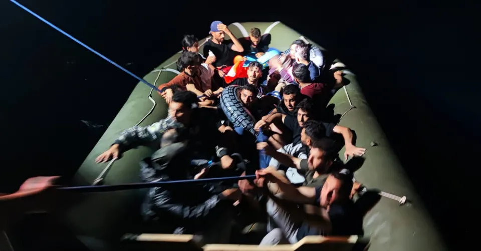 Ekipler, Yunanistan unsurlarınca Türk kara sularına itilen lastik bottaki 21 düzensiz göçmeni kurtardı.
