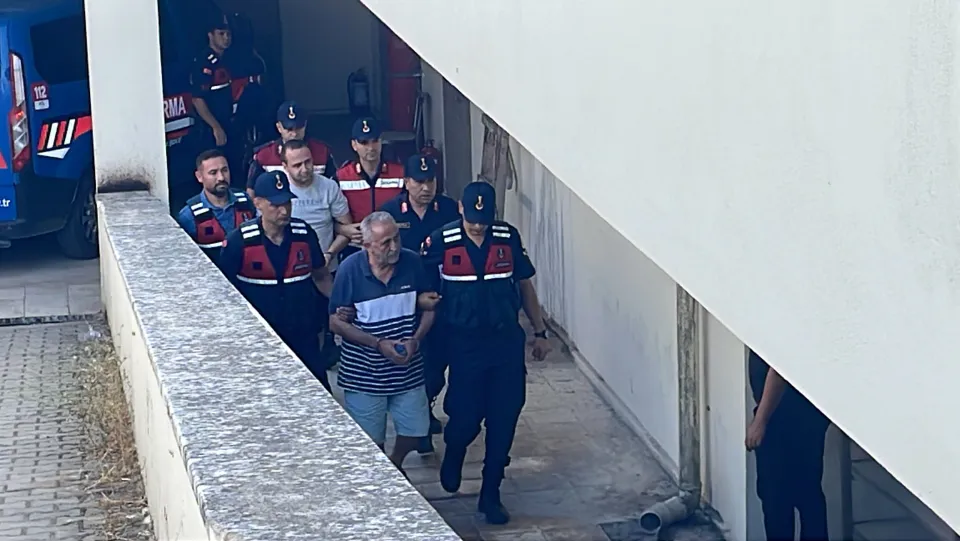 Jandarmadaki işlemleri tamamlanan cinayet şüphelisi G.Ö. ile Denizli'de gözaltına alınan O.K, geniş güvenlik önlemleri altında Bodrum Adliyesi'ne getirildi.