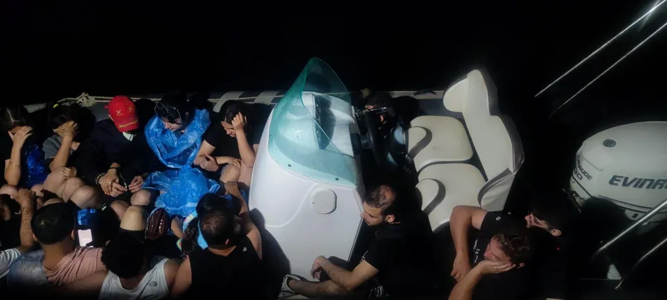 Bodrum ilçesi açıklarında, lastik bottaki 16 düzensiz göçmen yakalandı.
