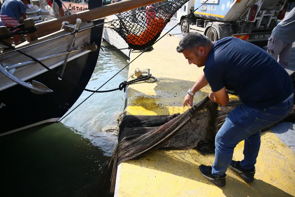 Baş, ağları yaklaşık 40 metre derinlikten çıkardıklarını belirterek, kendilerine bu çalışmada desten veren iş insanı Mustafa Güneri'ye teşekkür etti.