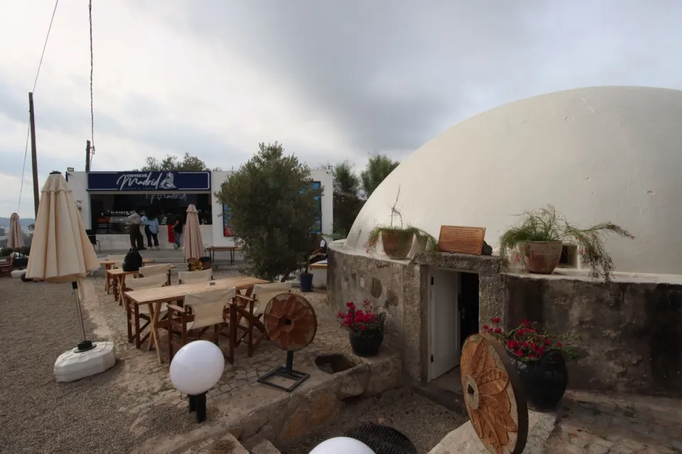 Göklere uzanan bir lounge alanı ve 150 çeşit kahve çeşidiyle hem lezzet, hem tarih, hem de dinlence alanı olarak tasarlanan mekan, Bodrum mimarisine uygun tasarımı, çevre dostu enerji ve atık arıtma sistemi ve tümüyle taşınabilir konseptiyle merak uyandırıyor. Yalıkavak yolundaki “Tinycafe” konseptli Coffee de Madrid, güneş paneli sistemi, kompost tuvalet, sulama suyuna dönüşen atık su teknolojisi gibi özellikleri sayesinde, şebekeden bağımsız, kendi kendine yetebilen, yenilikçi ve yeşil dostu bir mobil kafeterya olarak hizmet veriyor. Mimar Nilgün Yılmaz, sarnıcın birkaç metre ötesindeki tarihi yel değirmenini de tümüyle kendi imkanlarıyla restore ederek mekana dahil etti. Yel değirmeninin harap olmuş kanatlarını yenileyen ve led aydınlatma ile belirgin hale getiren Yılmaz, ıslak hacim tasarımı yaptığı değirmeni, biosu teknolojisine bağlayarak sadece mimarisiyle değil çevre ilişkisi ile de sürdürülebilir bir projeyi hayata geçirdi.