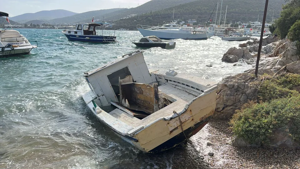 Fırtına nedeniyle bazı amatör balıkçı tekneleri su aldı. Torba ve Ortakent mahallelerinde ahşap, yelkenli ve bir motor yat kayalıklara sürüklendi.