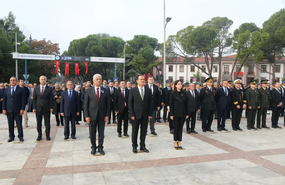 Türkiye Cumhuriyeti'nin kurucusu Büyük Önder Mustafa Kemal Atatürk'ün ebediyete intikalinin 85'inci yılı dolayısıyla saat 09.05'te sirenlerin çalmasıyla birlikte Muğla'nın ilçelerinde vatandaşlar, saygı duruşunda bulundu.
