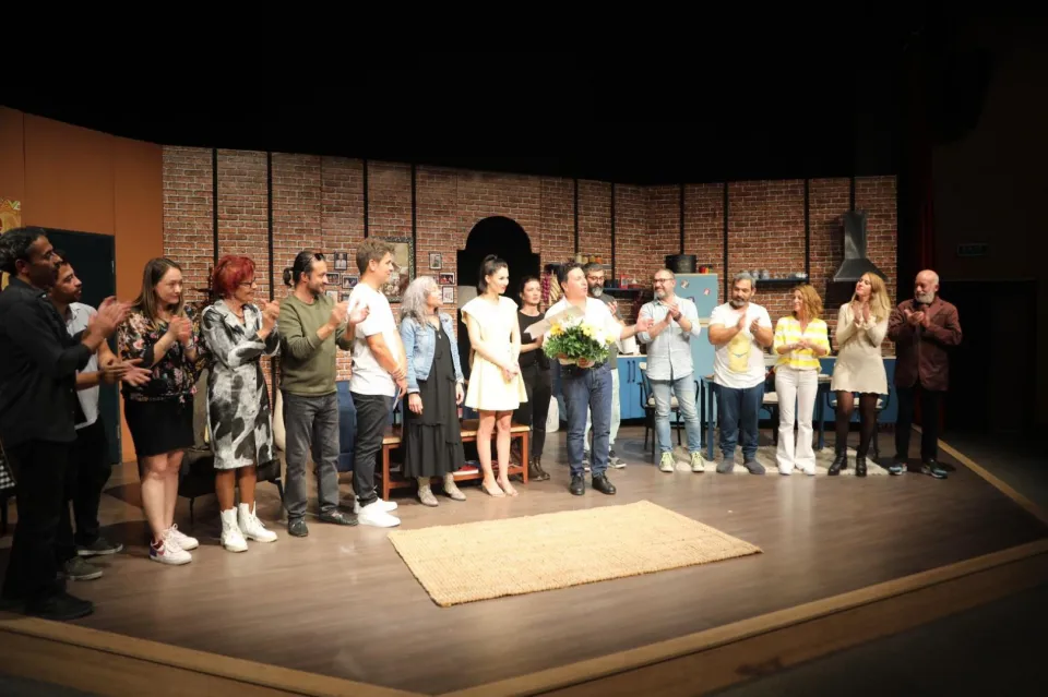 BŞT Oyuncusu Barış Hayta ve oyunun yönetmeni Ali Şahin, Limonata’nın sahnelenmesindeki katkılarından ötürü kişi ve kurumlara teşekkür ederken fiili olarak oyunun çıkmasına emek verenleri sahneye çağırdı.