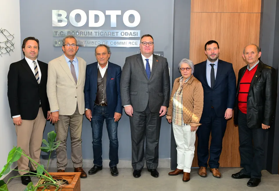 Karadağ'ın Ankara Büyükelçisi Perisa Kastratovic beraberinde Müsteşar Dragan Krivokapic ile birlikte Bodrum Ticaret Odası’nı ziyaret etti. BODTO Meclis Başkanı İlhan Ersan, Yönetim Kurulu Başkan Yardımcıları İbrahim Akkaya, Erdem Ağan, Yönetim Kurulu Üyesi Fatma Nur Tuncer ve Meclis Üyesi Toros Demirdöven ile bir araya gelen Karadağ heyeti Bodrum ile ikili ilişkileri geliştirmek istediklerini ifade etti.
