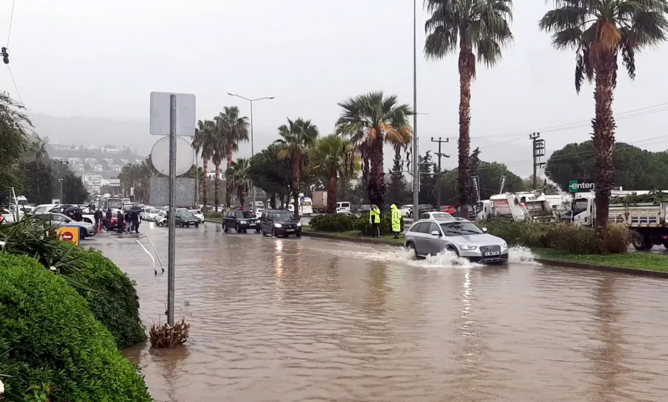 Bodrum ilçesinde sağanak yağış günlük yaşamı olumsuz etkiledi.