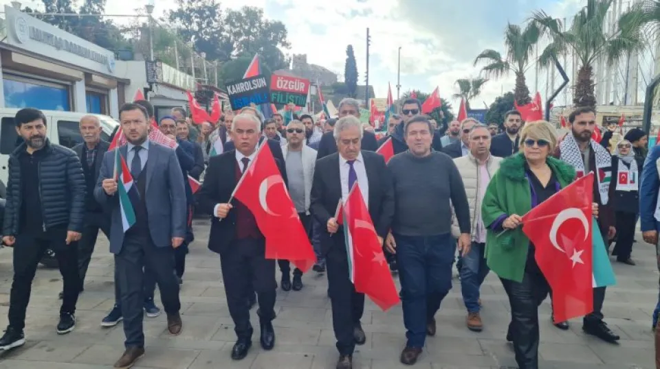 İsrail'in Filistin'e yönelik saldırıları, Bodrum'da yürüyüşle protesto edildi. Yürüyüş sonunda dualar okundu, basın açıklaması yapıldı.