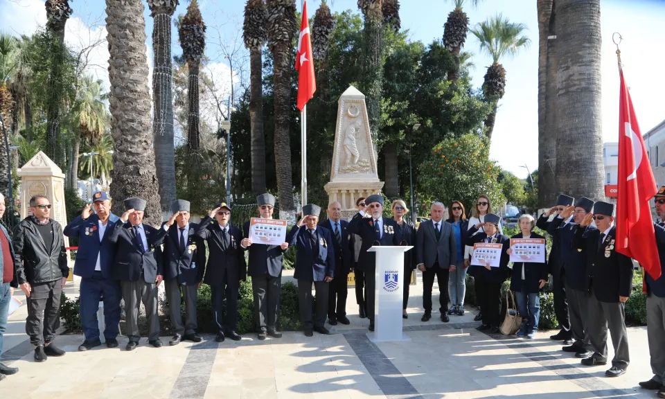 Türkiye Muharip Gaziler Derneği Bodrum Şubesi ile Bodrum Halikarnas Şubesi Emekli Astsubaylar Derneği üyeleri, Bodrumlu Gaziler Anıtı'nda bir araya geldi.