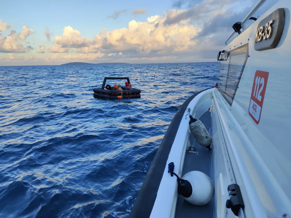 Yunanistan unsurlarınca Türk karasularına geri itilen can salı ve lastik bottaki 32 düzensiz göçmen kurtarıldı.