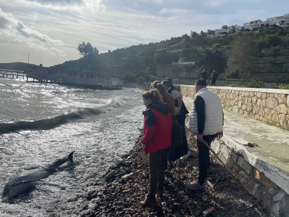 Bodrum ilçesinde kıyıya vuran yaralı yunus kurtarılamadı.
