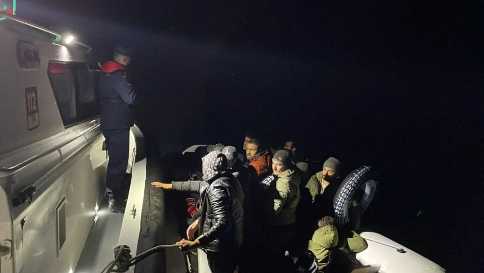 Ekiplerce, hareketli lastik bot durdurularak yasa dışı yollarla yurt dışına gitmeye çalışan 31 düzensiz göçmen yakalandı.