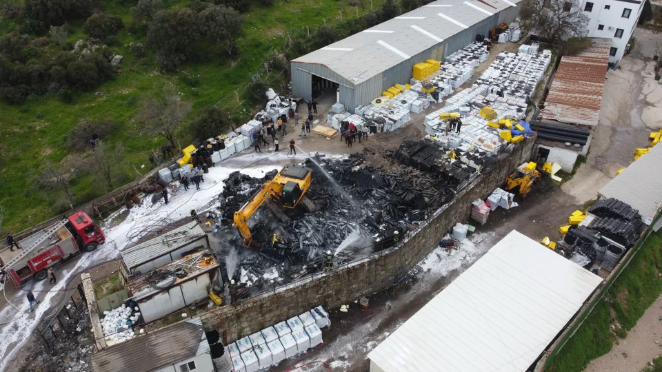 Bodrum ilçesinde, açık alanda bulunan inşaat izolasyon malzemelerinin tutuştuğu yangını itfaiyeciler söndürdü.