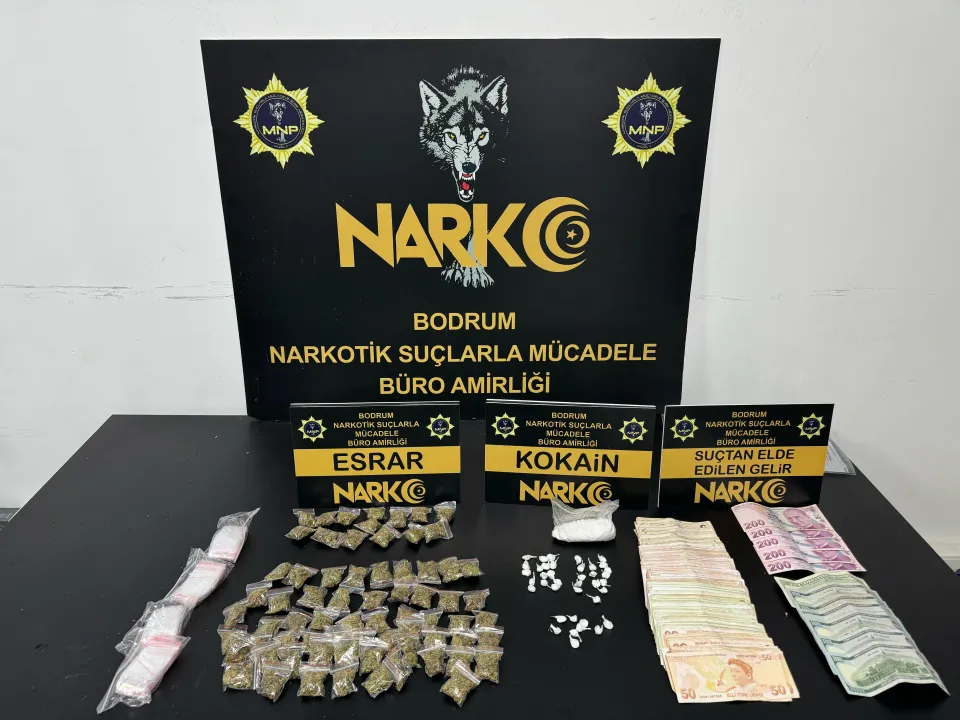 Operasyonda bir miktar uyuşturucu ve suçtan elde edildiği değerlendirilen 9 bin 270 lira, 1220 dolar ve 95 avro ele geçirildi.