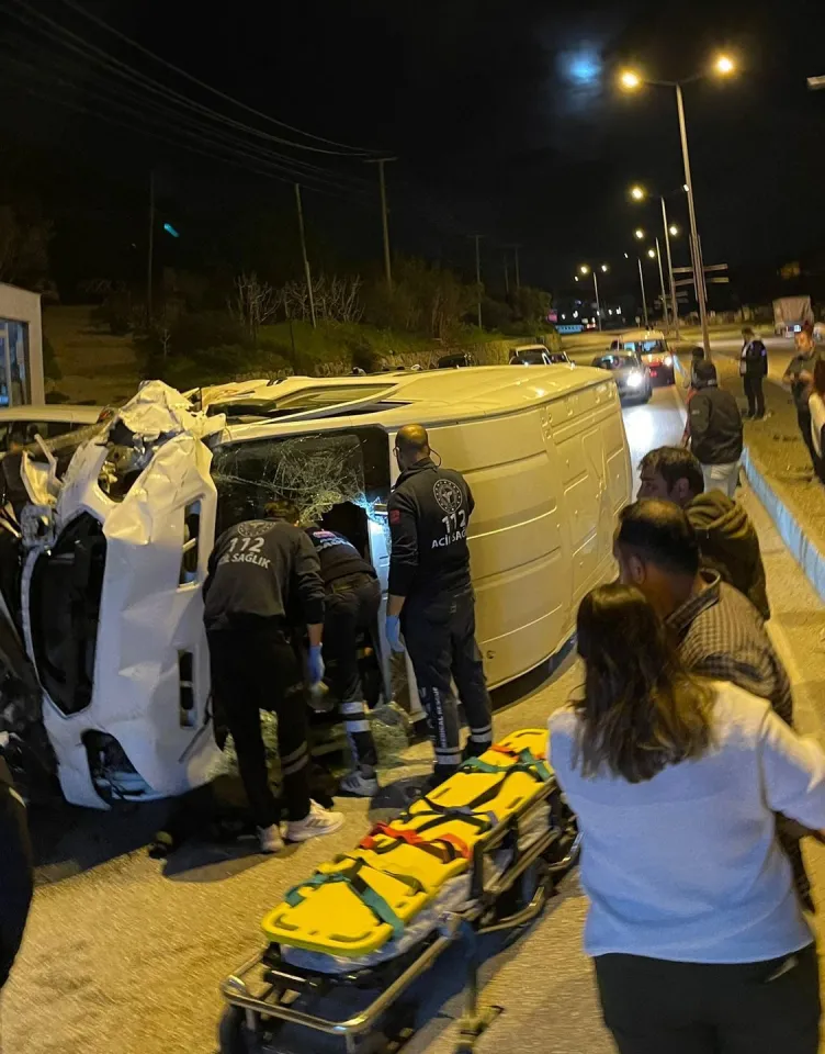 Bodrum-Turgutreis kara yolu Gürece mevkisinde, Gökhan Demirtaş'ın kullandığı 34 DLT 498 plakalı kamyonet, kontrolden çıkarak yol kenarında park halindeki 4 araca çarptıktan sonra devrildi.