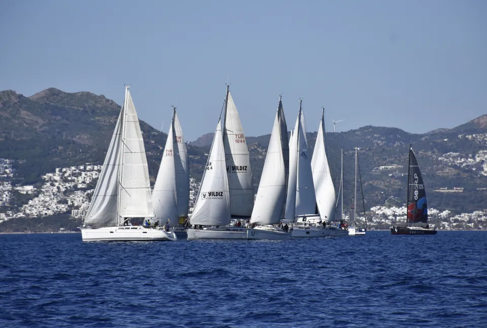 Bodrum açıklarında IRC-A, IRC-B ve destek olmak üzere üç sınıfta düzenlenen yarışların üçüncü ayak ilk gün mücadelesinde, katılımcılar bir süre rüzgar bekledi.
