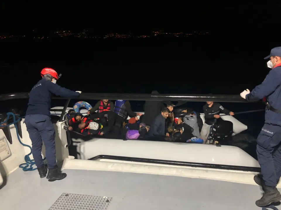 Ekiplerce durdurulan lastik botta aralarında çocukların da olduğu 31 düzensiz göçmen yakalandı.