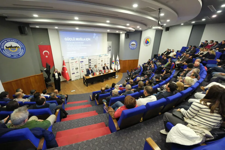 Bodrum Ticaret Odası Konferans Salonu'nda BESİAD'ın talebiyle düzenlenen etkinlikte kendisi de BESİAD üyesi olan Bodrum Belediye Başkanı ve Muğla Büyükşehir Belediye Başkan adayı Ahmet Aras, Bodrum Belediye Başkan adayı Tamer Mandalinci ile geride kalan 5 yıllık süreci ve hayata geçirilecek projelerini anlattı.