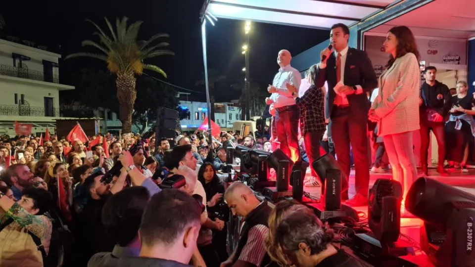Kesin olmayan seçim sonuçlarına göre Bodrum Belediyesi’nin yeni başkanı seçilen Tamer Mandalinci, meydanda coşkulu kalabalığa seslendi.