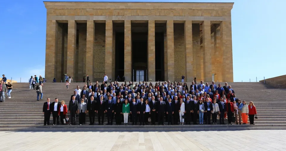 Türkiye Cumhuriyeti’nin kurucusu Gazi Mustafa Kemal Atatürk’ü ebedi istirahatgahında ziyaret eden Muğla Büyükşehir Belediye Başkanı Ahmet Aras, ilçe belediye başkanları Aslanlı Yol’dan yürüyerek Atatürk’ün mozolesinin önüne geldi. Mozoleye çelengin bırakılmasının ardından saygı duruşunda bulunuldu.