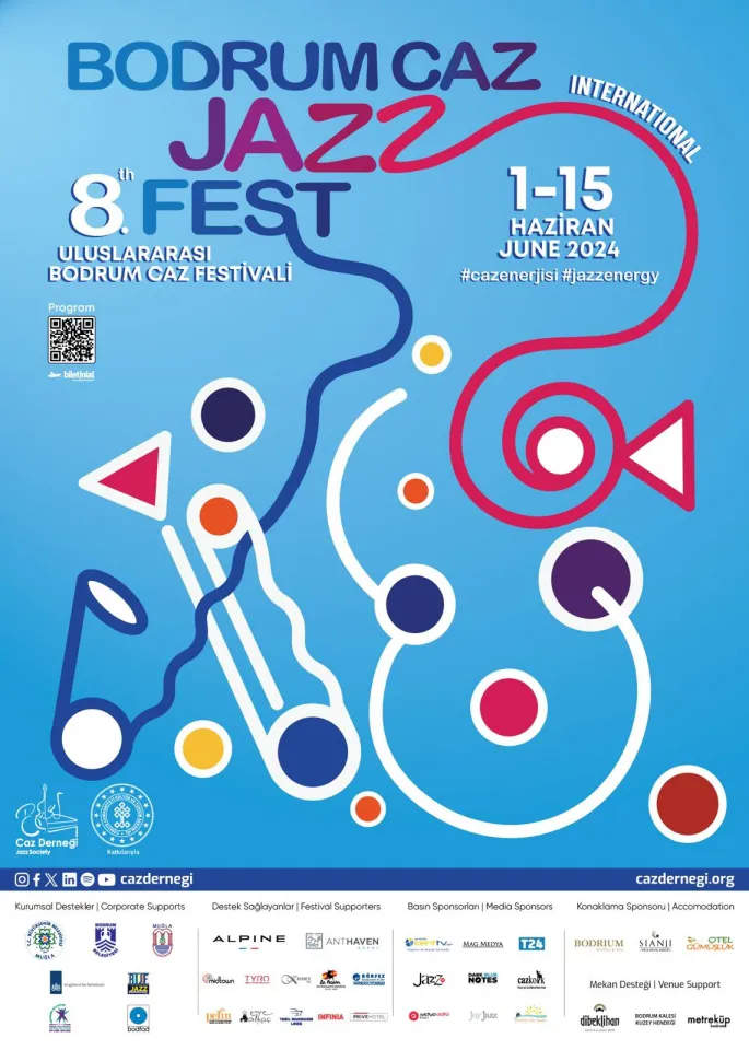 Caz Derneği tarafından T.C. Kültür ve Turizm Bakanlığı, T.C. Muğla Büyükşehir Belediyesi ve T.C. Bodrum Belediyesi destekleriyle düzenlenen 8. Uluslararası Bodrum Caz Festivali, 1-15 Haziran 2024 tarihleri arasında #CazEnerjisi temasıyla gerçekleşiyor.