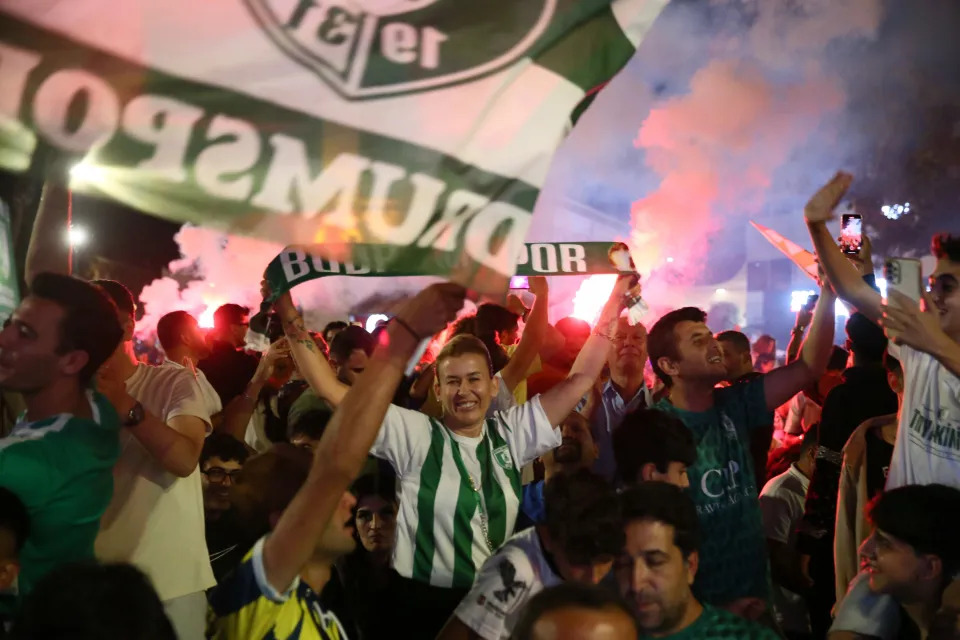 Trendyol 1. Lig play-off finalinde Sakaryaspor'u normal süresi 1-1 biten ve uzatmaya giden maçta 3-1 yenerek Süper Lig'e çıkan Bodrum FK'nin taraftarları, Bodrum Belediye Meydanı'nda kutlama yaptı.