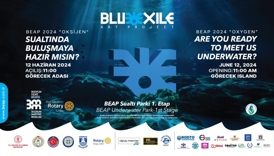 Bodrum Belediyesi bünyesinde faaliyetlerine devam eden Bodrum Deniz Müzesi ve Uluslararası Rotary 2440. Bölge’ye bağlı Mavi Ege Denizi Rotary Kulübü proje ortaklığında hayata geçirilen Blue Exile Art Project (BEAP) Sualtı Parkı'nın 1. Etap açılış etkinliği, 12 Haziran 2024 Çarşamba günü Bitez Mevkii Görecek Adası’nda saat 11:00'de gerçekleştirilecek. Bodrum Yarımadasındaki deniz çayırlarını korumak ve bilinçlendirme sağlamayı hedefleyen Project Posidonia iş birliğinde deniz ve kıyıları koruma farkındalığını sanatın gücüyle birleştiren sualtı parkında ilk etapta 6 sanatçının eseri yer alacak.