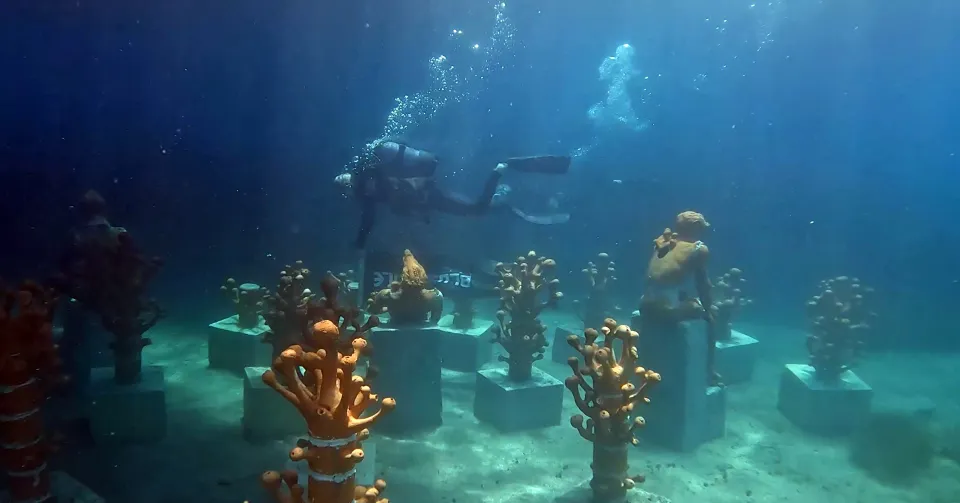 Deniz ve kıyıları koruma farkındalığı oluşturma amacıyla düzenlenen etkinlikte 6 sanatçı, "oksijen" temasıyla hazırladıkları büyük boyutta heykel, heykel grubu ve yerleştirmeleri su altında sergiledi.
