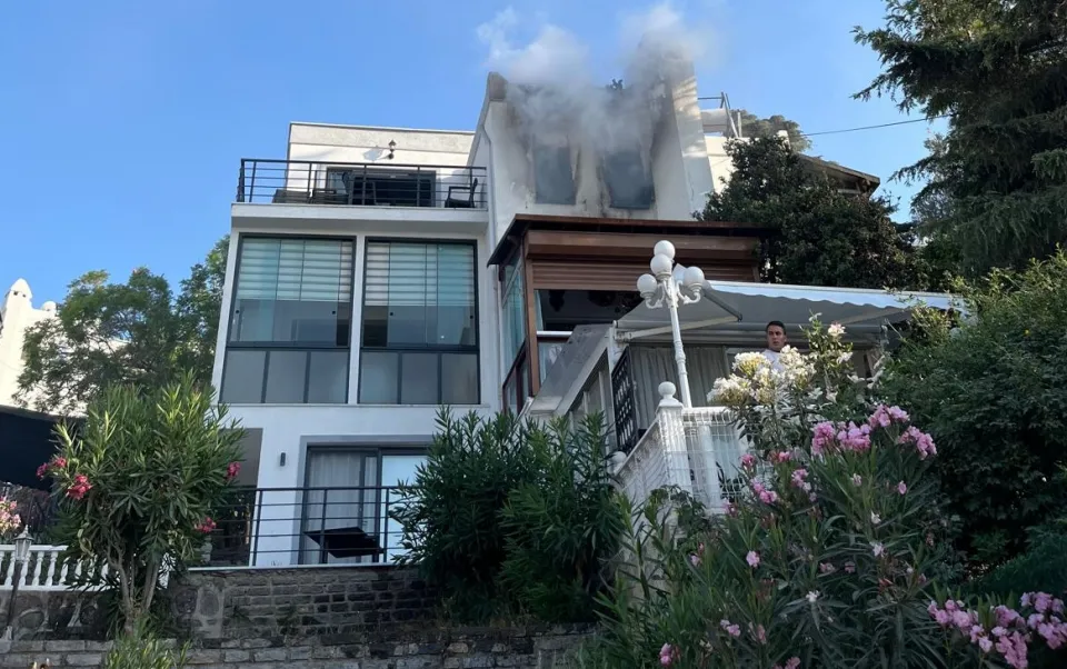 Dirmil Mahallesi Sporkent 1 Sitesi'nde üç katlı evin üçüncü katından alevlerin yükseldiği ihbarını alan Muğla Büyükşehir Belediyesi Bodrum İtfaiye Grup Amirliği ekipleri belirtilen adrese gitti.