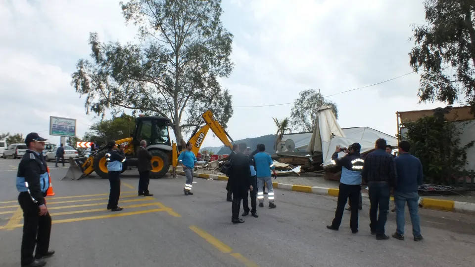 Marmaris Belediye ekipleri, karayolunu trafiğe kapattı. Ardından büfede bulunan eşyalar dışarı çıkartıldı. Dört kepçe darbesiyle büfe yıkıldı. Çıkan moloz ve atıklar belediye temizlik ekipleri tarafından temizlenerek kamyonlarla atık tesisine götürüldü. İşletme yetkilisinin bulunmadığı yıkımlarda çalışanlar gözyaşı döktü.