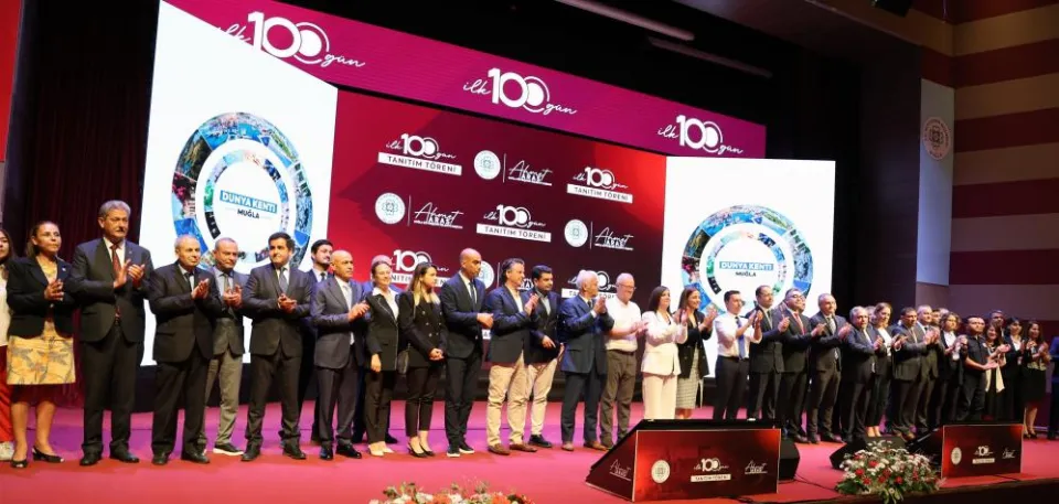 İl ve İlçe Başkanları, İlçe Belediye başkanları ve Daire Başkanlarının katıldığı 100 günlük proje tanıtım toplantısında konuşan Başkan Aras, “Biz belediye başkanlarını en çok sizlerden aldığımız enerji motive ediyor. Seçimlerden önce ‘Dünya Kenti Muğla’ vizyonu ile yola çıkmıştık. Şimdi yeni bir aşamaya geçtik. İlk 100 gün aslında çok kısa bir süre. Fakat neler yapacağımızı planlamıştık. Sizlerin karşısına çıkacak kadar hizmet biriktirdiğimizi düşünüyorum" dedi.