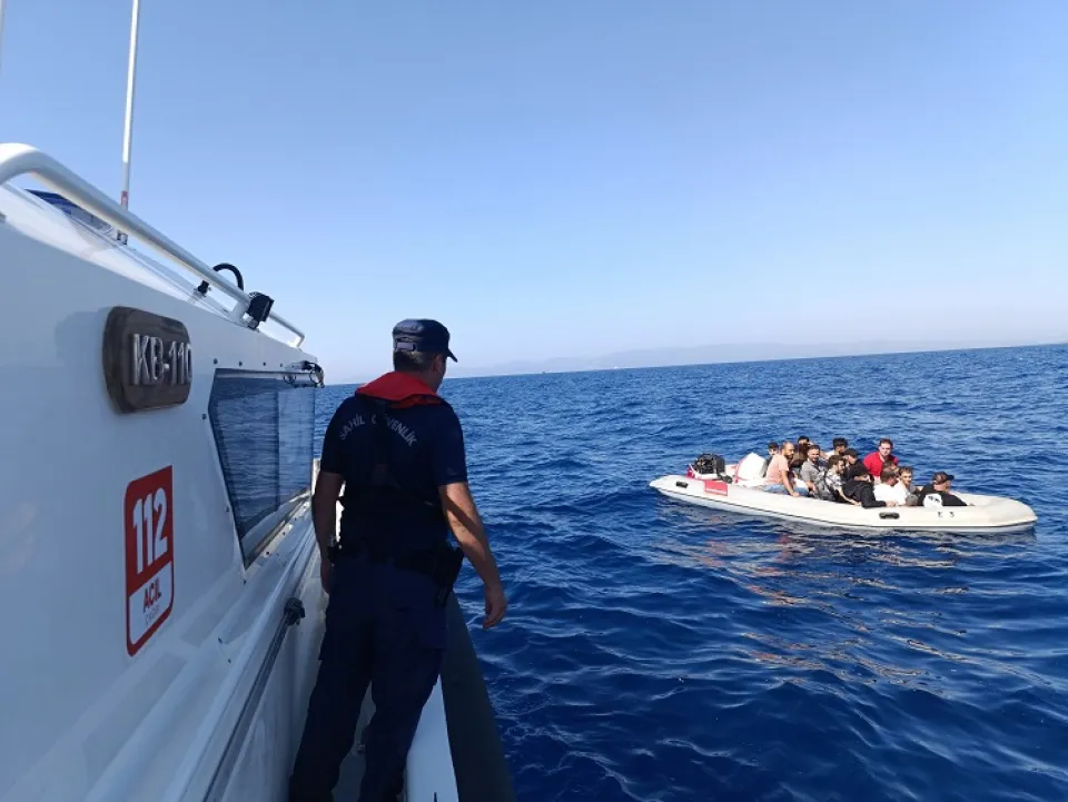 Bodrum açıklarında motor arızası yaparak sürüklenip yardım talebinde bulunan 13 düzensiz göçmen de ekiplerce kurtarıldı.
