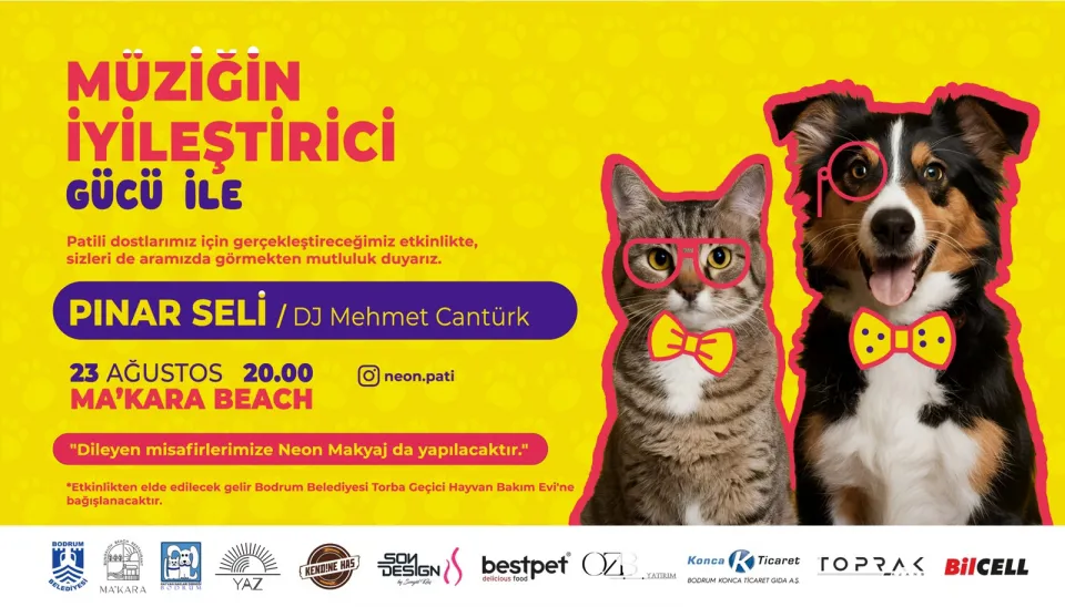 23 Ağustos 2024 tarihinde Yalıçiftlik Ma’kara Beach te gerçekleştirilecek Neon Party sayesinde, müziğin iyileştirici gücü ile dost patilerin yaraları sarılacak bir etkinlik gerçekleştirilecek.