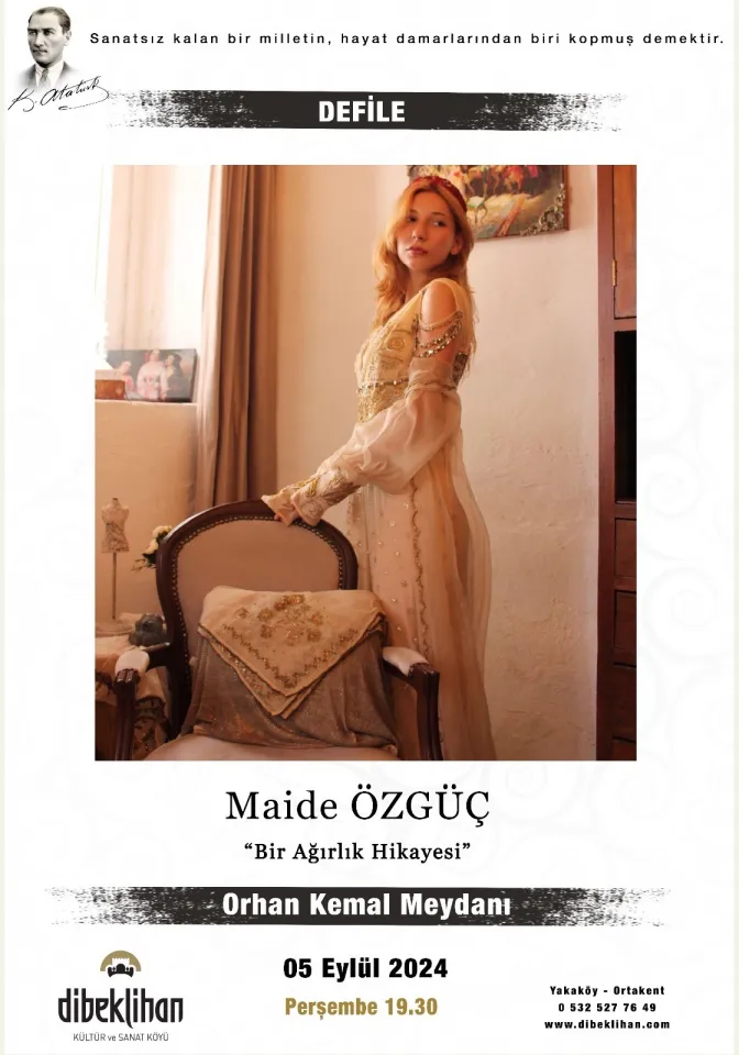 5 Eylül 2024 Perşembe günü saat 19:30’da Dibeklihan-Orhan Kemal Meydanı’nda gerçekleşecek Maide Özgüç “Bir Ağırlık Hikayesi” Defilesine davetlisiniz.