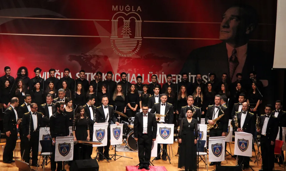 Üniversite AKM Salonunda düzenlenen konserde Bando Yüzbaşı Atıf Taner Çolak şefliğinde gerçekleşen konserde Muğla Sıtkı Koçman Üniversitesi Eğitim Fakültesi Güzel Sanatlar Eğitimi Bölümü Müzik Eğitimi Ana Bilim Dalı korosu konsere Sarı Zeybek eseri ile başladı. Konserde sırasıyla ‘Sen sen sen’, ‘İzmir’in Dağlarında’, ‘İleri marşı’, ‘Bülbülün Altın Kafeste’ ‘Onuncu Yıl Marşı’ ‘Sabahın Seherinde’ ‘Mastafa’m Marşı’ ve ‘Biz Atatürk Gençleriyiz’ eseri ile konser son buldu.