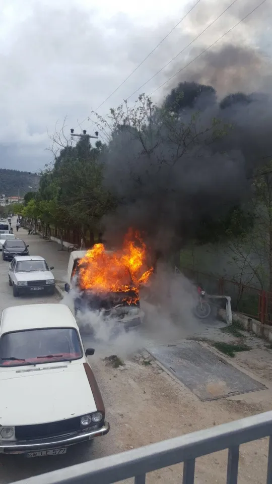 Edinilen bilgiye göre; park halinde olan 09 E 6887 plakalı ticari araçta bilinmeyen bir nedenden dolayı yangına çıktı. Aniden aracın yanmaya başlayıp alev toğuna dönmesi çevrede paniğe neden olurken yangına itfaiye ekipleri kısa sürede müdahale etti. Kısa sürede söndürülen yangın sonrasında hurdaya dönen araç kullanılmaz hale gelirken yangınla ilgili soruşturma başlatıldı. (İHA)