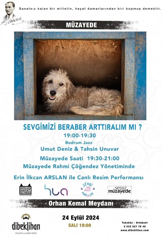 24 Eylül’de sanat ve sevgi, sokak hayvanları yararına buluşuyor. Sevgi Arttırma Projesi kapsamında düzenlenecek ilk etkinlik, 24 Eylül 2024’te Dibeklihan Kültür ve Sanat Köyü’nde gerçekleşiyor. Başka Bir Hayat Diliyorum Derneği yararına düzenlenen bu anlamlı etkinlikte, ünlü sanatçılar ve amatör sanatseverler, eserlerini sokak hayvanlarına yardım için sunacak.