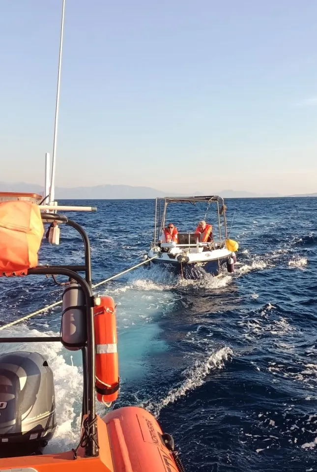 Bodrum ilçesi açıklarında makine arızası nedeniyle sürüklenen teknedeki 2 kişi kurtarıldı.