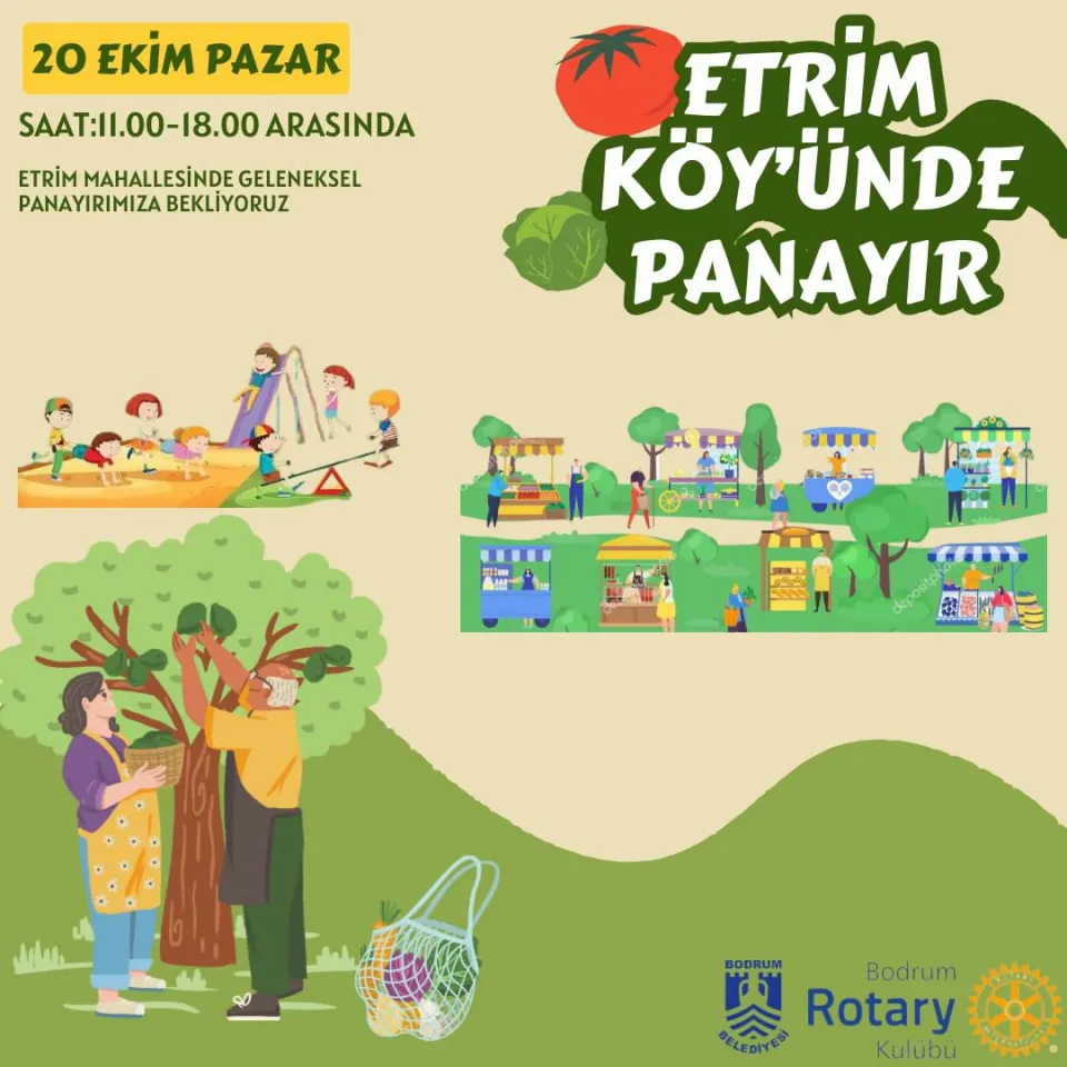 Bodrum Rotary Kulübü ve Pınarlıbelen Etrim Köyü Muhtarlığı işbirliğiyle her yıl düzenlenen geleneksel panayır, bu yıl da büyük bir coşkuyla 20 Ekim Pazar günü gerçekleştirilecek.