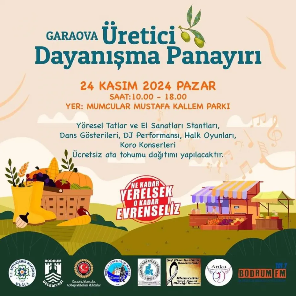 Muğla Büyükşehir Belediyesi, Bodrum Belediyesi ile Mumcular, Gölbaşı ve Karaova muhtarlıklarının destekleriyle 24 Kasım Öğretmeler Günü’nde Mumcular Mustafa Kallem Parkı’nda Garaova Üretici Dayanışma Panayırı düzenlenecek.