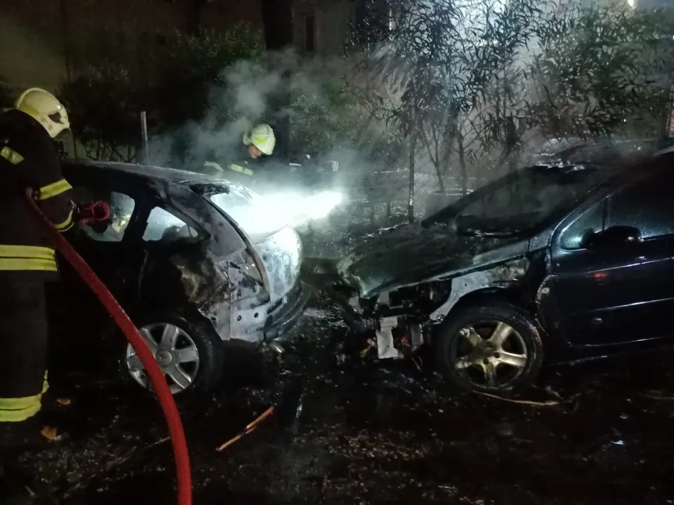 Ekiplerin müdahalesiyle söndürülen yangında, iki otomobilde büyük çapta hasar oluştu.