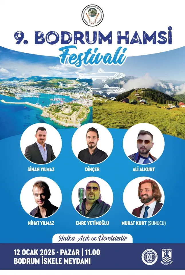 Bodrum Hamsi Festivali, müzikle de dolu dolu olacak. Karadeniz müziği ve kültürünün zirveye çıkacağı etkinlikte, Sinan Yılmaz, Dinçer, Ali Alkurt, Nihat Yılmaz ve Emre Yetimoğlu gibi ünlü isimler sahne alacak. Festivalin müzik programı, katılımcılara coşkulu anlar yaşatacak. Etkinlik, geçen yıl olduğu gibi, Murat Kurt tarafından sunulacak.