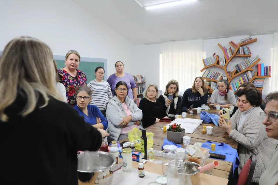 Muğla Büyükşehir Belediyesi kırsalda bal mumu eğitimleri ile kadınların üretime katılmalarını ve sosyalleşmesini sağlıyor.