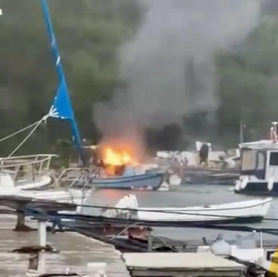 Bodrum ilçesinde 7 metre uzunluğundaki lüks bir balıkçı teknesi, henüz belirlenemeyen bir nedenle alev aldı. Yangın sırasında adeta alev topuna dönen tekne, kullanılamaz hale geldi.