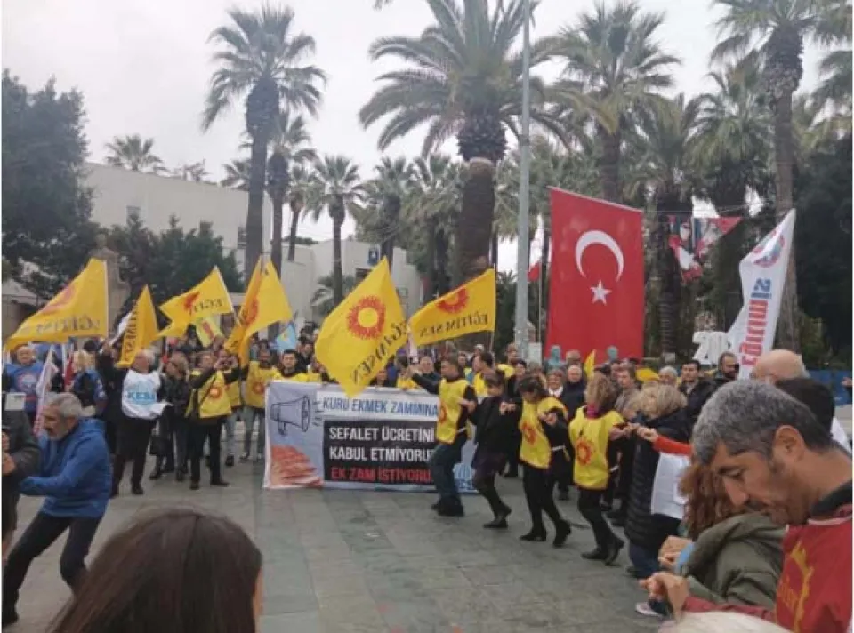 BASK, Birleşik Kamu İş, KESK, Hür Sen ve Asim Sen tüm yurtta bir günlük iş bırakma eylemi gerçekleştirdi. Bodrum’da da biraraya gelen Kamu çalışanları ve işçiler “Geçinemiyoruz” diyerek iktidarı uyardı. Genel Grev çağrısında bulunan kamu çalışanları ve işçilere siyasi partiler ve bazı STK’lar da destek verdi.