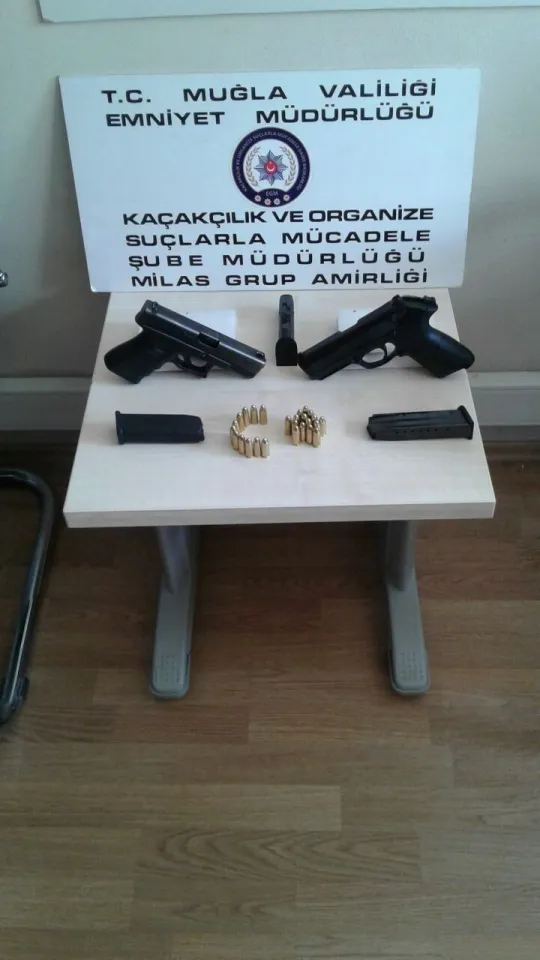 Milas'ta polisin yaptığı uygulamada suikast silahı olarak bilinen 'Glock' marka ruhsatsız tabanca ele geçirildi.