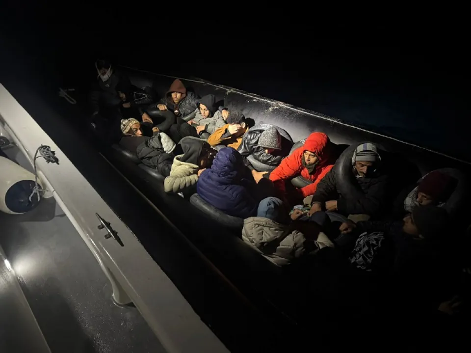 Bodrum ilçesi açıklarında lastik botta aralarında çocukların da bulunduğu 21 düzensiz göçmen yakalandı.
